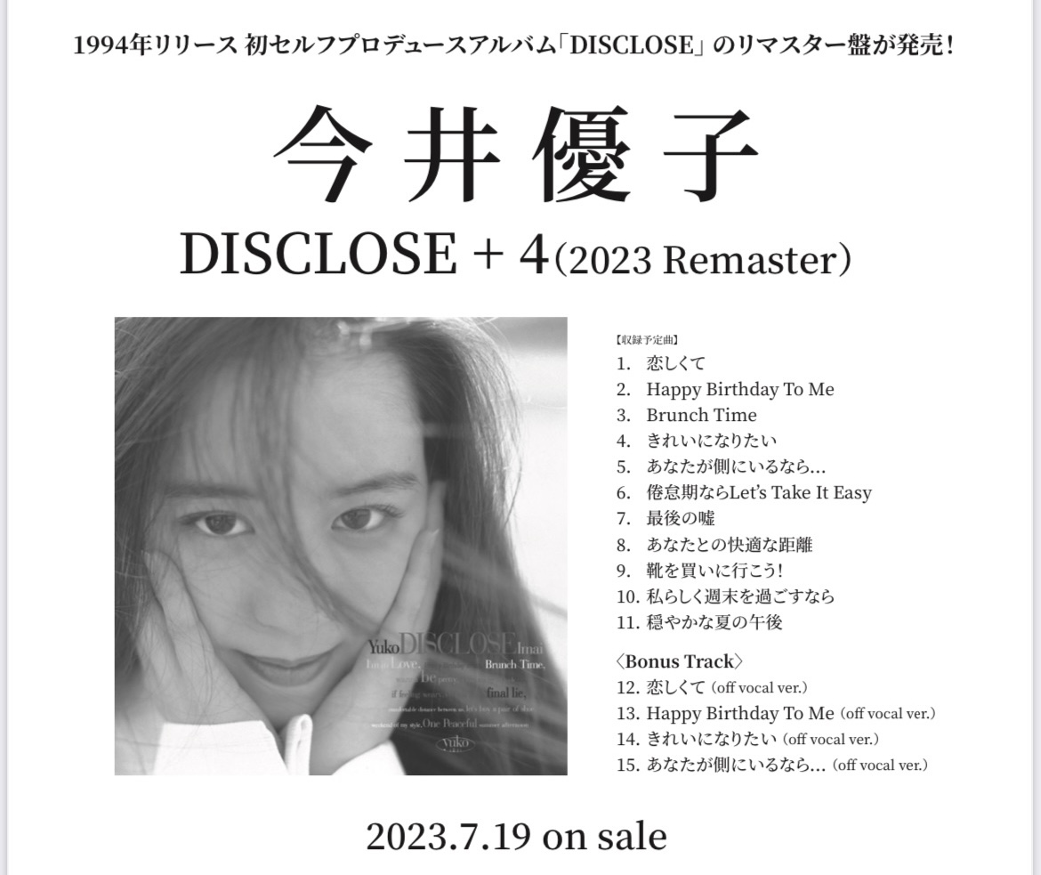 1994年に発売された「DISCLOSE」の再リリースが決定しました♪
